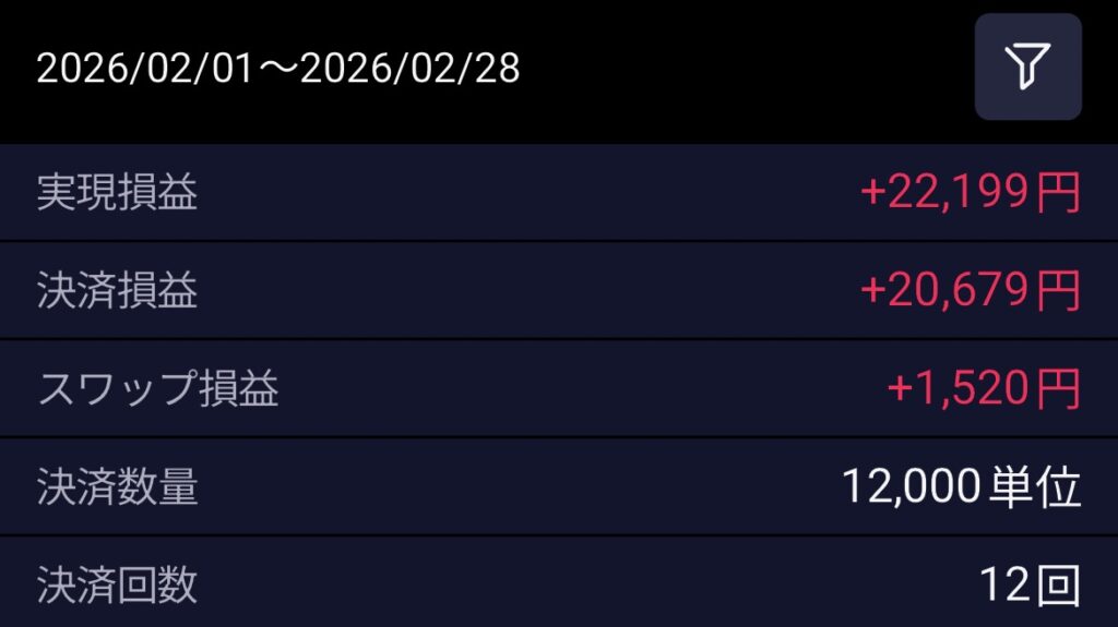 | 月間損益 | +22,199円 |